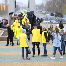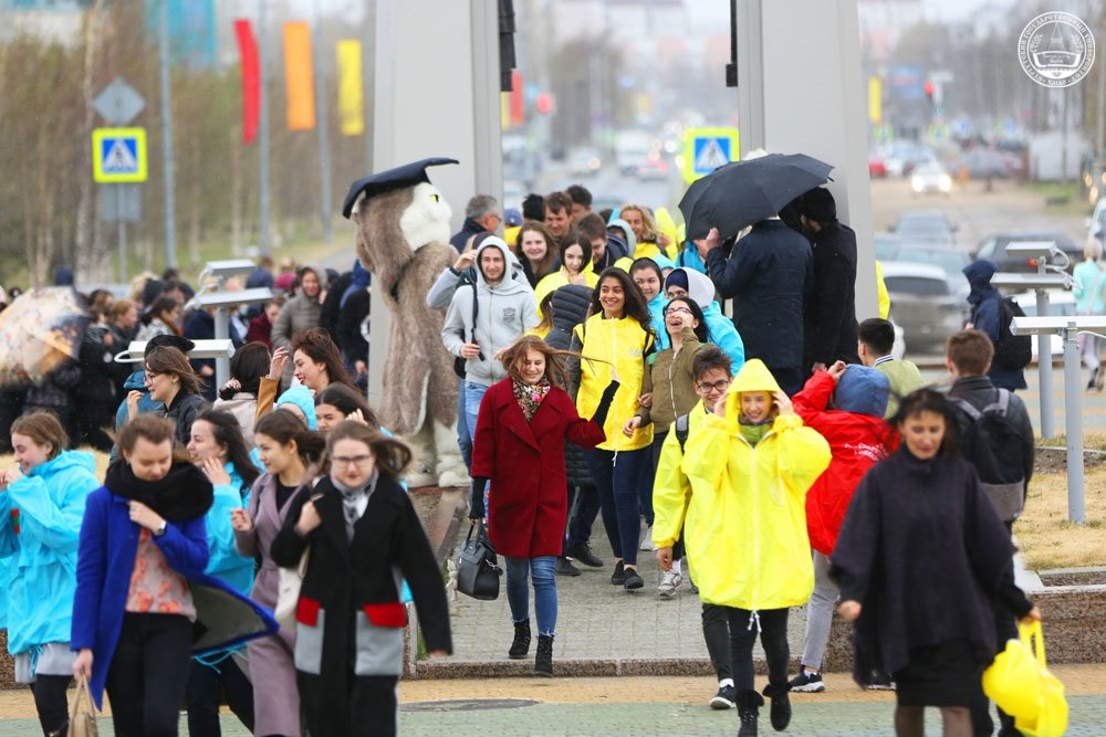 Несмотря на дождь и порывистый ветер, благодаря выступлению творческих коллективов Сургутского государственного университета митинг получился ярким и красочным.