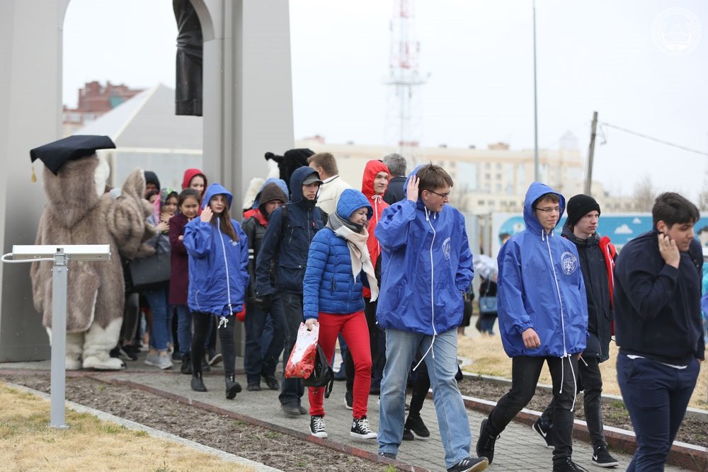 В завершение мероприятия в небо были выпущены белые голуби как символ мира и чистоты. А все студенты во главе с ректором Сергеем Косенком, не нарушая сложившуюся традицию, прошли в университет сквозь символичные врата знаний.