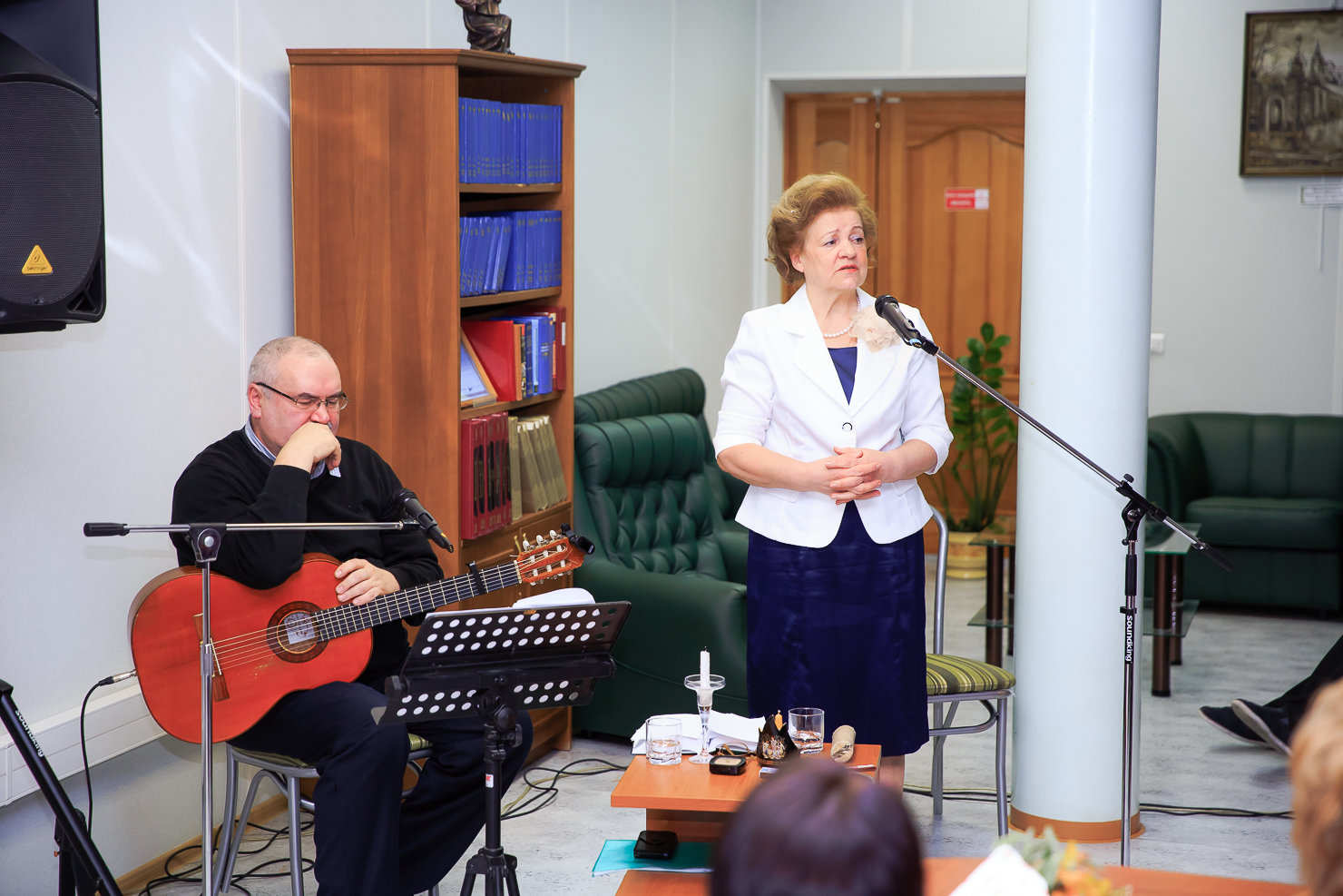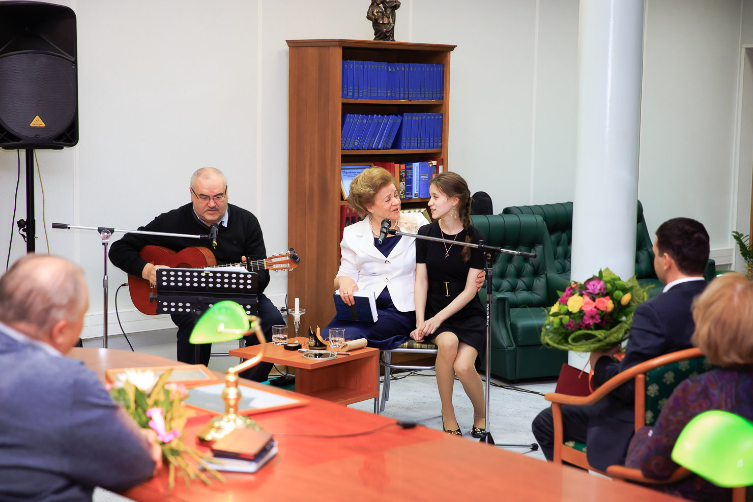 На этот раз Надежда Стрельцова предстала перед своими коллегами и друзьями в ином качестве, преподав мастер-класс по сохранению семейных традиций, мудрости, доброты, любви к людям и своей Родине. В уютной и располагающей к общению обстановке профессорского зала под аккомпанемент гитары и а капелла Надежда Яковлевна исполнила старинные и современные песни и романсы, прочитала любимые стихи русских поэтов.