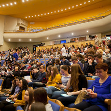 Об особенностях поступления в университет в 2017 году школьникам рассказала начальник отдела организации приема обучающихся Ольга Шарамеева, а подробнее об обучении, возможностях заниматься наукой и богатой внеучебной жизни студентов — директора институтов и заведующие кафедрами.