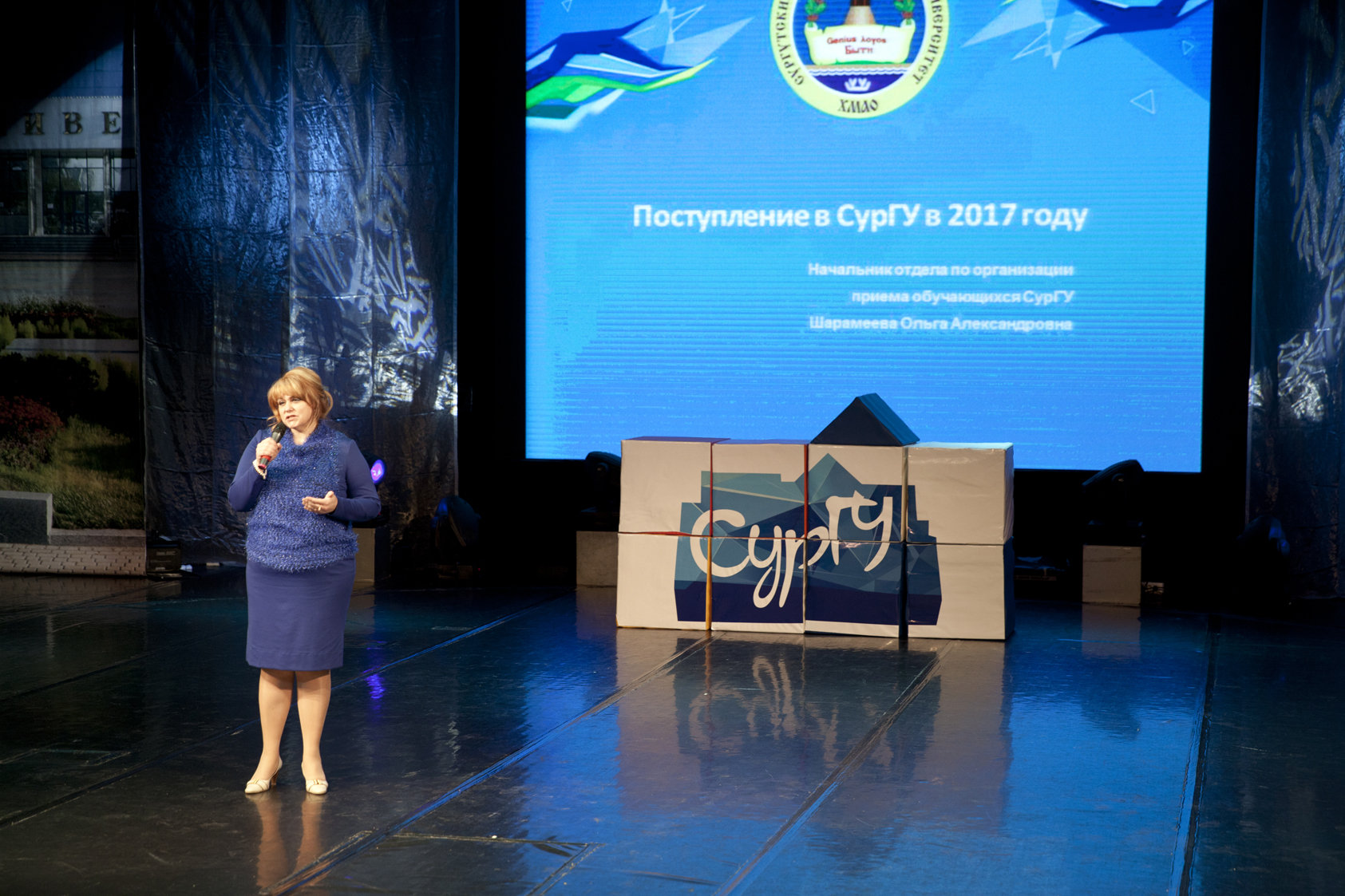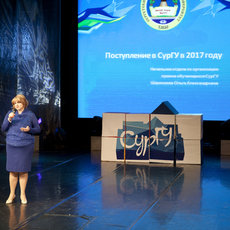 После состоялась встреча с руководством университета и институтов. Ректор СурГУ Сергей Косенок, приветствуя будущих абитуриентов, пожелал одиннадцатиклассникам успешно сдать ЕГЭ и отметил, что сегодня университет равно развивает как техническое, так и гуманитарное направления, что позволяет готовить креативно мыслящих молодых специалистов, востребованных на местном рынке труда. По статистике, 70–80 % молодых людей, которые выбирают обучение в иногородних вузах, после получения диплома возвращаются домой. Их адаптация на производстве проходит сложнее, чем у выпускников СурГУ, которые еще в процессе обучения проходят практику в региональных компаниях. 95 % выпускников СурГУ находят работу в первый год после окончания вуза, подавляющее большинство — по полученной специальности.