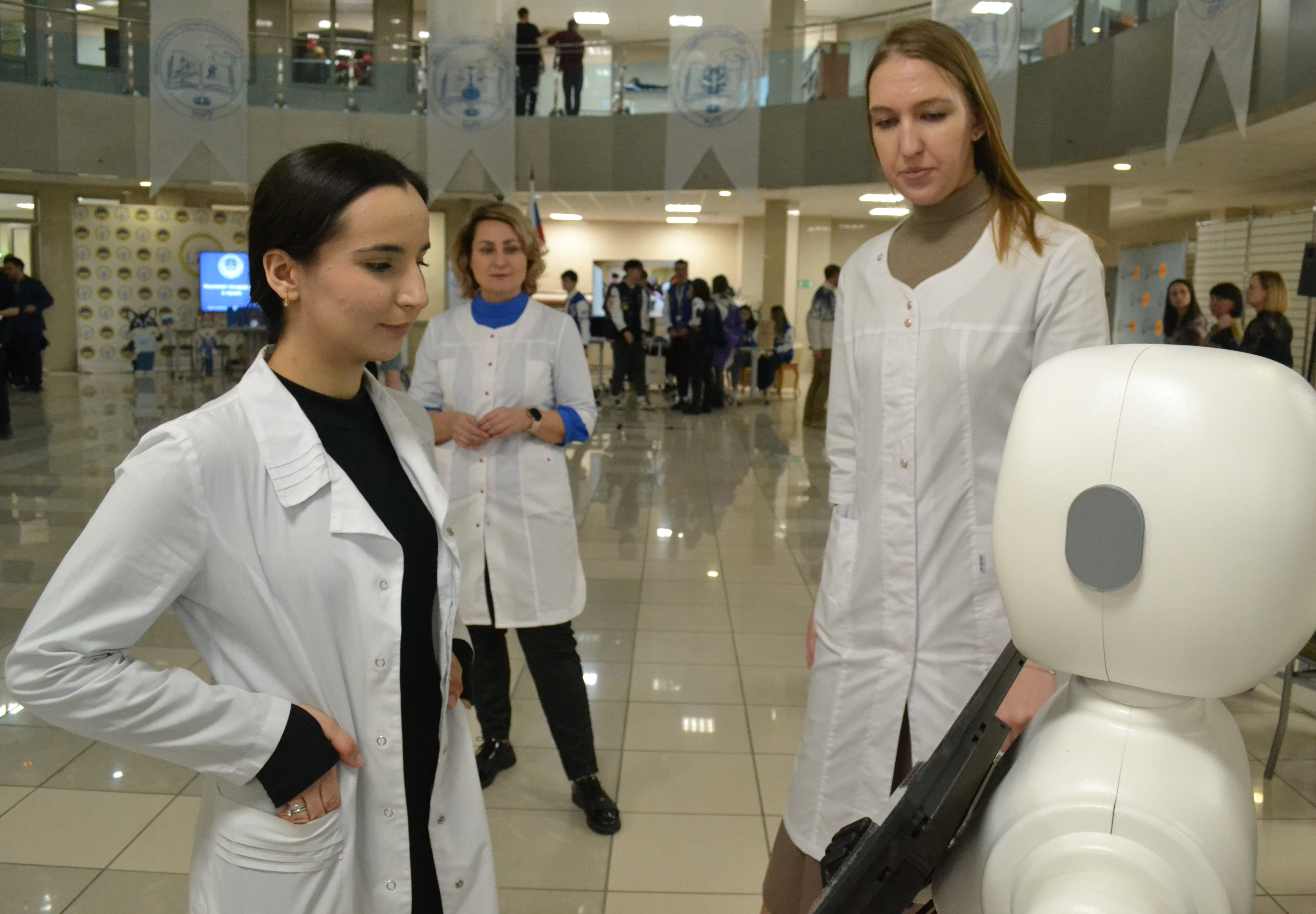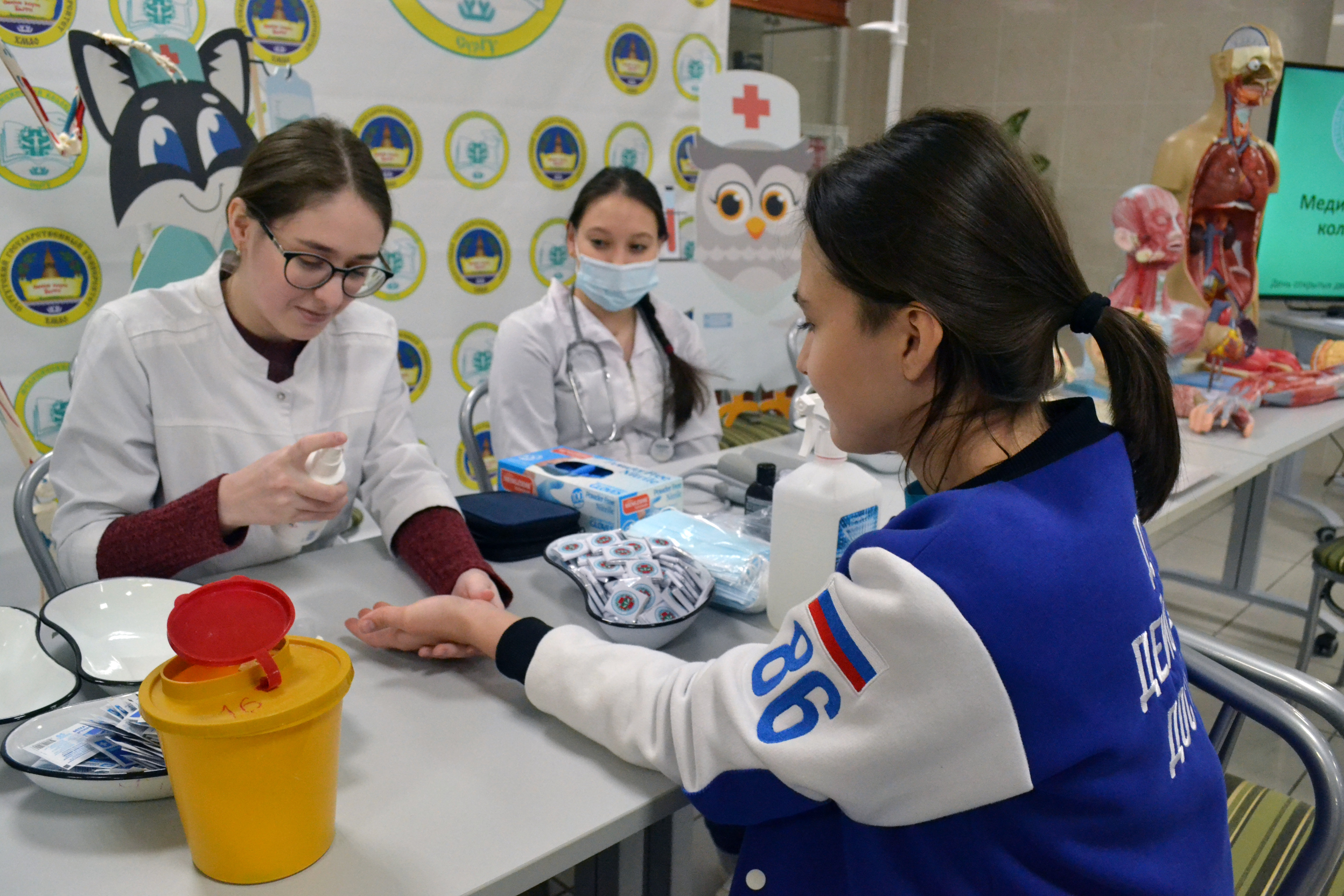 Высшее медицинское бинго знакомило с Медицинским институтом, куда ребята, ориентированные на специальности «Лечебное дело», «Педиатрия» и врачебное будущее, сразу направились, чтобы поработать за симуляторами и пообщаться с преподавателями. Они узнали, что такое прием Геймлиха, измерили оксигенацию крови и частоты пульса, научились грамотно проводить сердечно-легочную реанимацию и интубацию дыхательных путей и сфотографировались в белом халате на удачу.