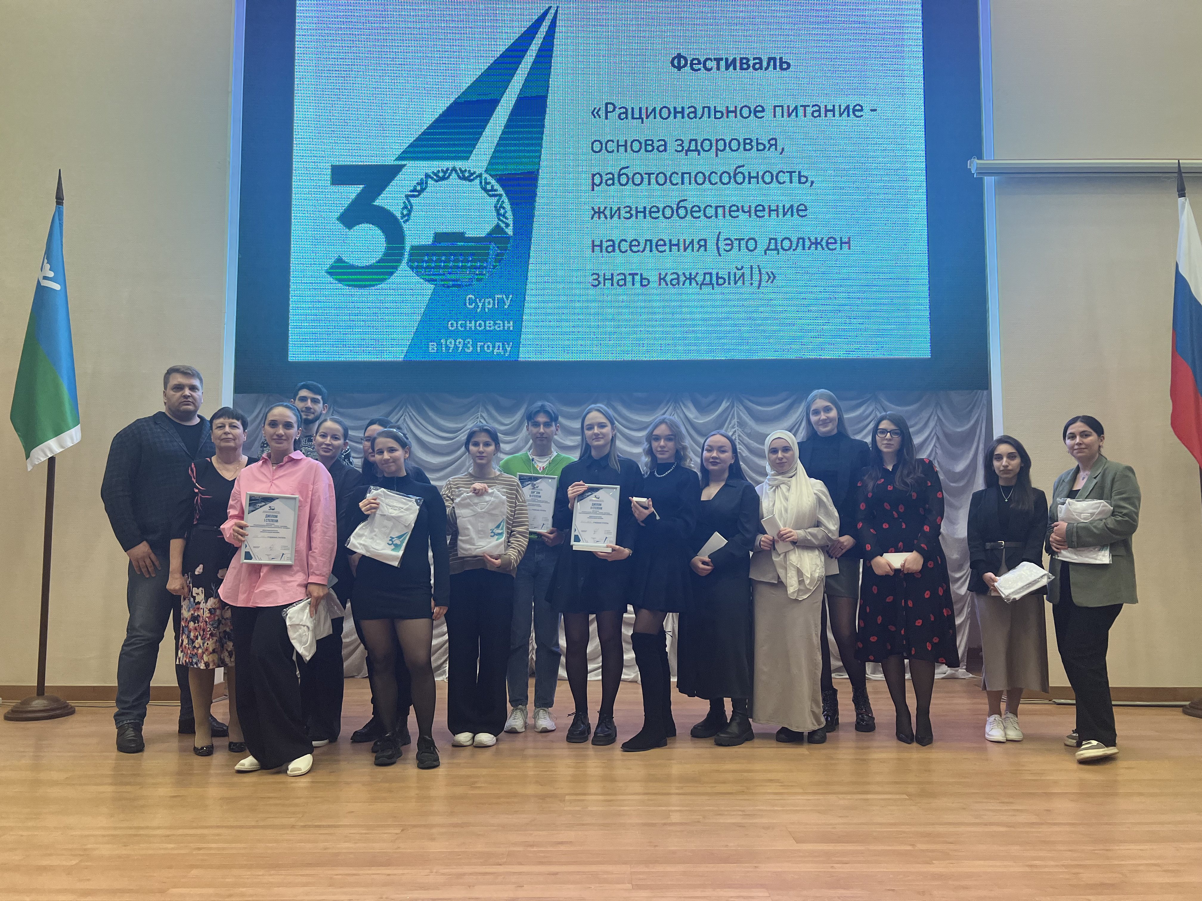 25 марта в конференц-зале Гуманитарного корпуса СурГУ успешно завершил работу Фестиваль для студентов Медицинского института, Медицинского колледжа и всех желающих студентов, преподавателей, а также жителей города «Рациональное питание – основа здоровья, работоспособности и жизнеобеспечения человека (это должен знать каждый!)», организованный преподавателями курса гигиены кафедры морфологии и физиологии С. В. Болотовым, В. С. Павловской, преподавателями Медицинского колледжа Е. Б. Павловским, Е. В. Алехиной в рамках плеяды мероприятий к 30-летию создания университета. На фестивале присутствовало более 200 человек.