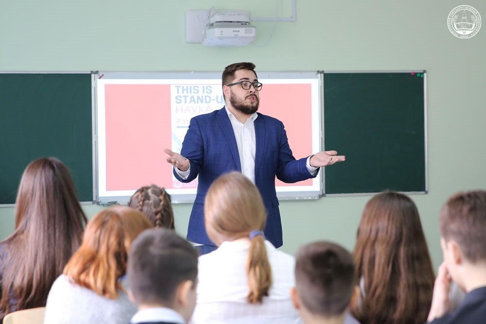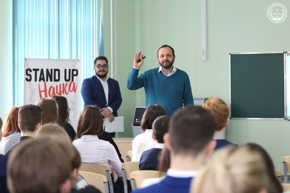 24 апреля участники проекта «Stand-Up Наука СурГУ» встретились с учащимися и учителями средней школы № 31 г. Сургута. Девиз этого проекта звучит так: «Научно – не значит скучно!» Студенты и преподаватели университета познакомили ребят с темами своих научных исследований. Так как проект «Stand-Up Наука СурГУ» нацелен на популяризацию науки, а основным правилом формата является краткость и простота, выступающие представили результаты своих научных изысканий в доступной и веселой форме. Каждое выступление сопровождалось интересными примерами, веселыми историями, шутками и обязательным интерактивом со зрителями.