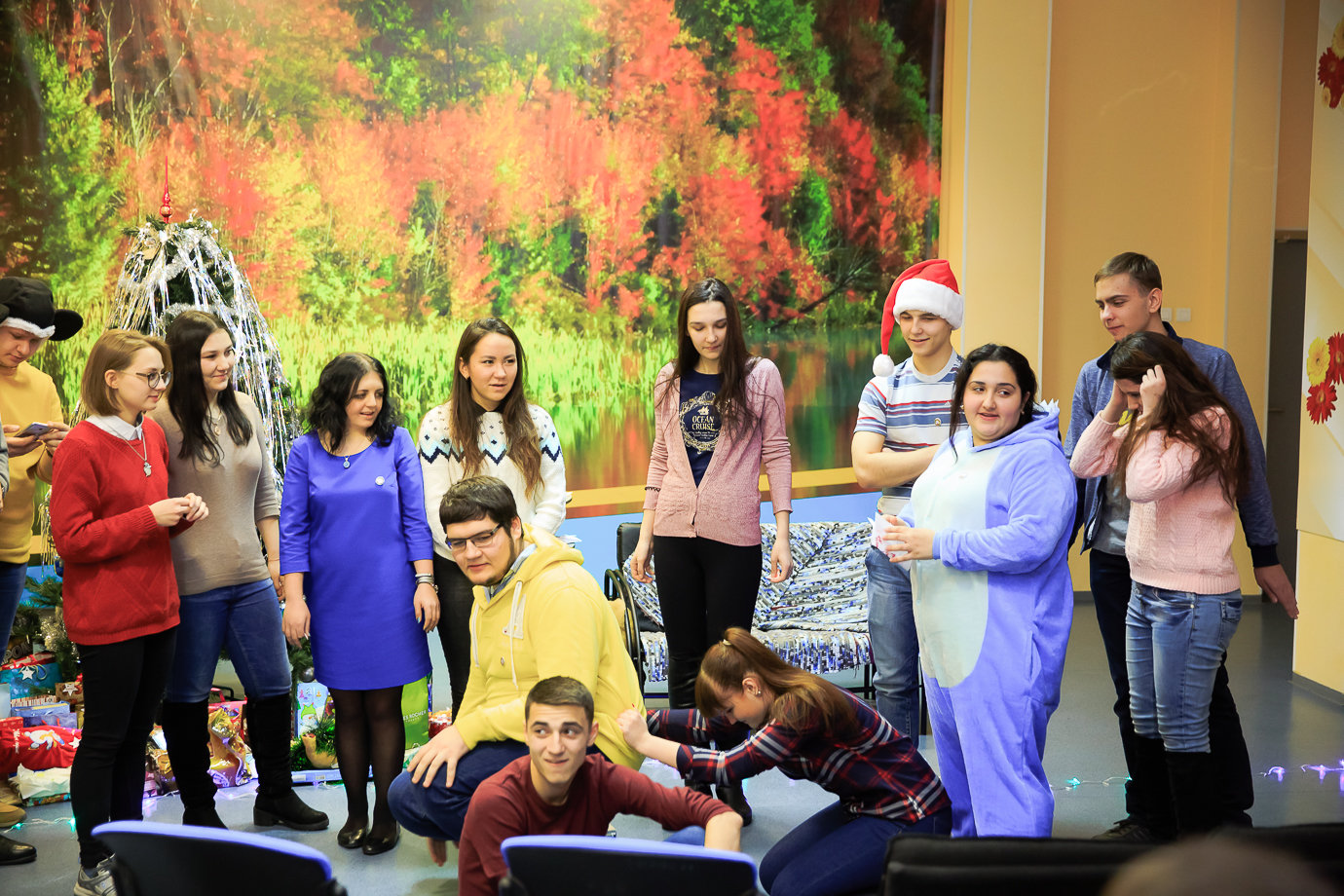 На новогоднем квартирнике было очень весело. Поднимали настроение песни в исполнении Айшат Нургишиевой, ей подпевали все Тайные Дедушки Морозы и даже водили хоровод. Прошла очень интересная игра от Наиры Макрдумян: раздавались бумажки с ролями, и «актеры» должны были исполнять все, что просила ведущая, победители конкурсов получали призы. А потом все дружно позвали Дедушку Мороза и Снегурочку, и началось то, чего так долго все ждали: вручение подарков! Перед этим студенты должны были прочитать стихи. Прямо как в детстве, правда?!