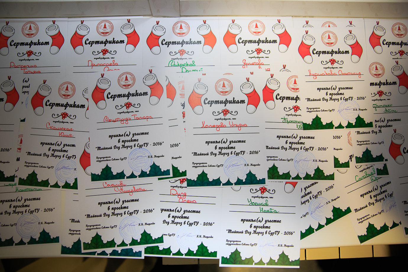 Вот, что Костя рассказывает о своём «детище»: «Мысль провести вечер под названием «Тайный Дед Мороз» пришла мне на первом курсе. Понял, что не хватает новогоднего мероприятия, где ребята могли бы поделиться своим теплом и настроением. Посовещавшись со студенческим парламентом (в то время так назывался студсовет), приняли решение о его реализации. В первый год было сложно. Тогда я работал без команды, все делал сам (моя большая ошибка). На второй год к проведению мероприятия подключились студенческий совет и внеучебный отдел, и стало намного проще. В этом году была та же команда организаторов.