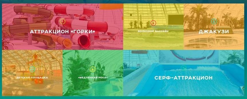 15.30–18.00 — аквапарк «На гребне волны» (2 часа + 30 минут на вход и выход) или свободное время