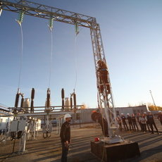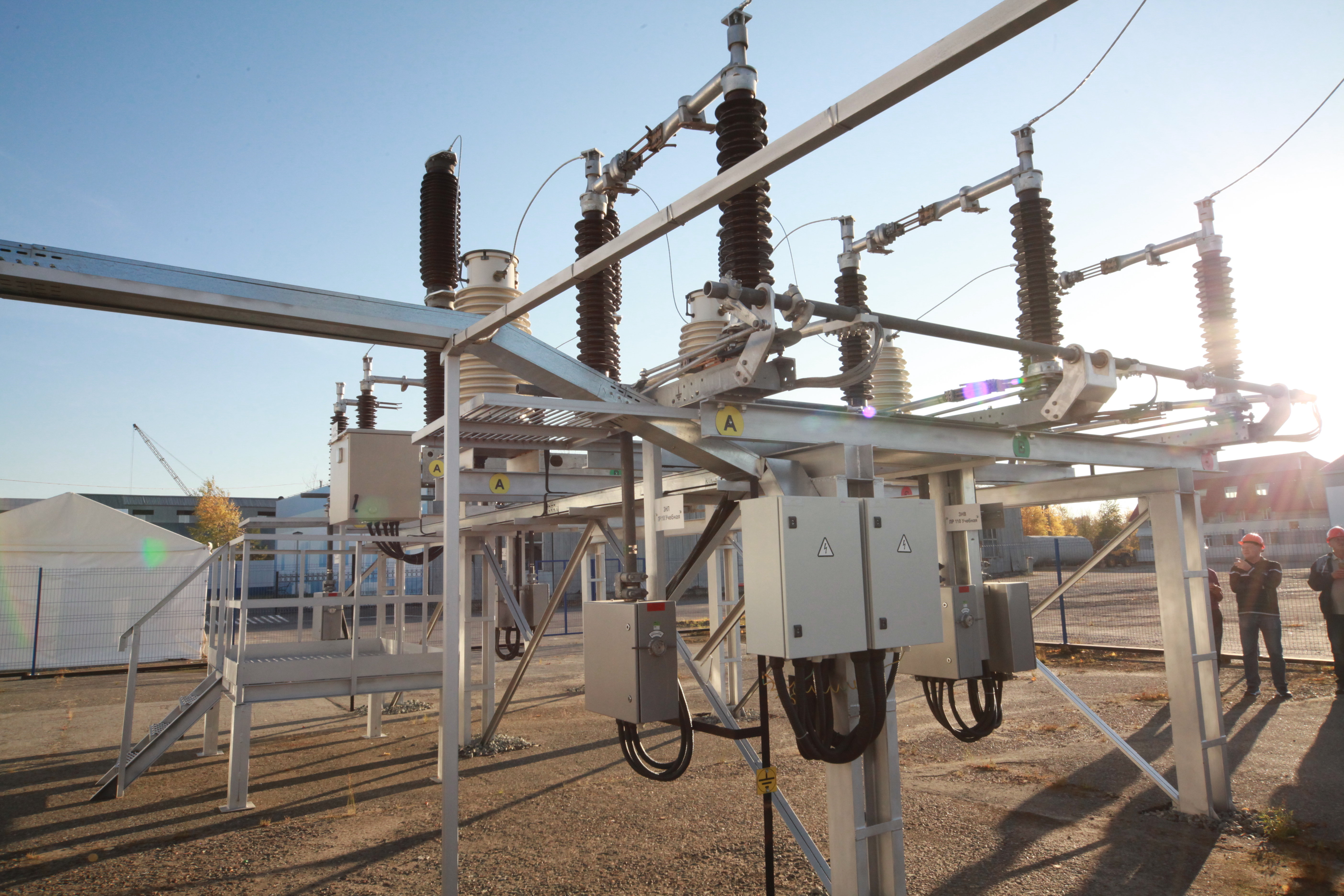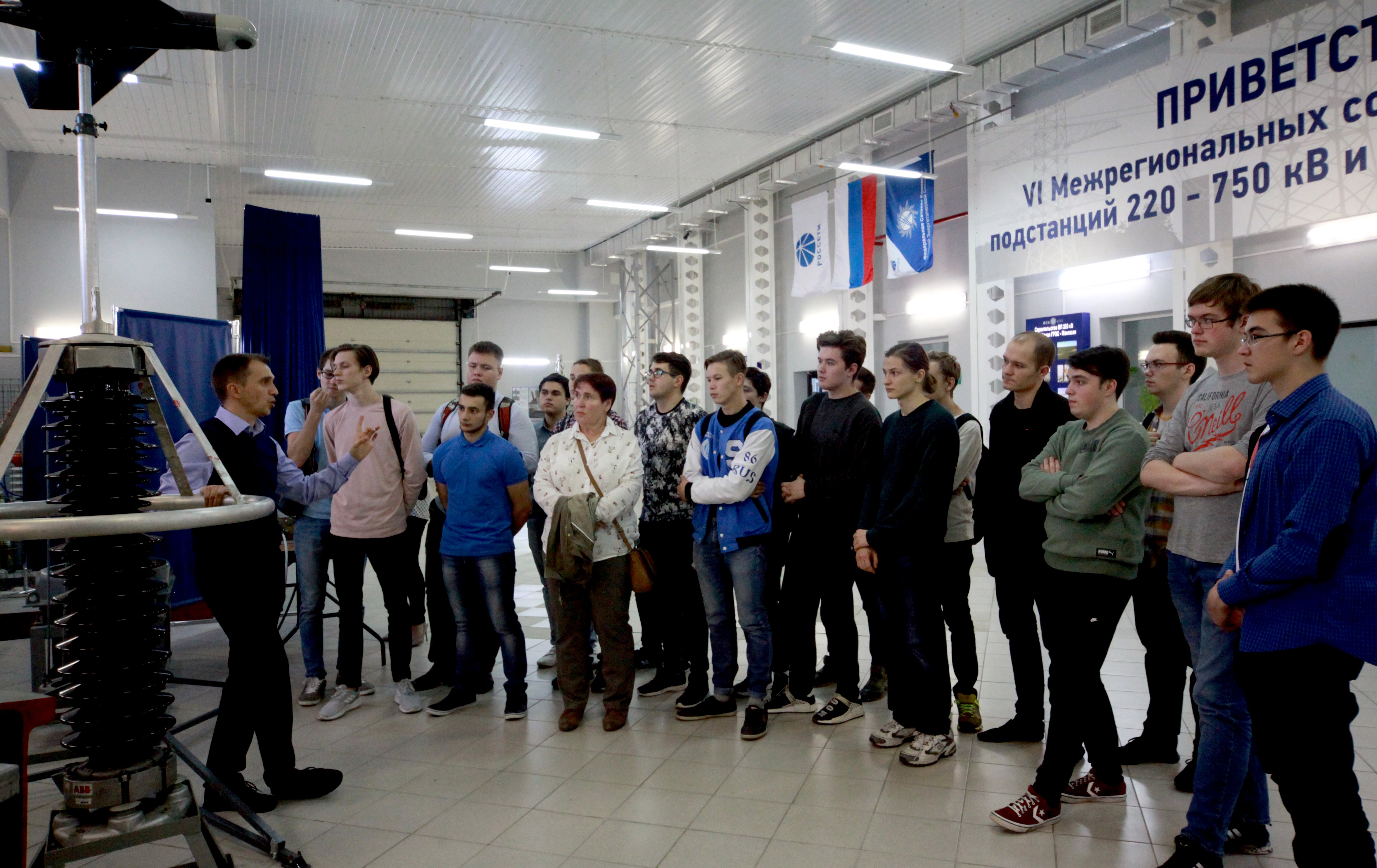 Но и на этом обширная программа не закончилась. Студентам также продемонстрировали подстанционное оборудование, трансформаторы тока, выключатели, разъединители и даже, как проходит работа на высоте. Завершилась экскурсия знакомством со спецтехникой.