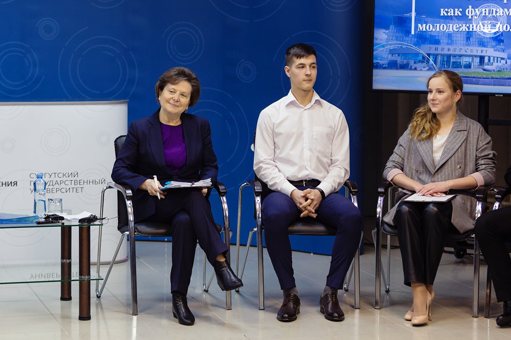 За круглым столом на площадке «Точки кипения» СурГУ молодые активисты с удовольствием делились с губернатором своими научными, творческими, спортивными достижениями, а также успехами своих образовательных организаций. Поговорили и на важные для университета и округа темы, а именно: о кооперации между госструктурами, общественными организациями и студенческой молодежью округа, о роли вуза в позиционировании региона на российском и международном уровнях, проектах, направленных на укрепление гармоничной социальной среды региона.