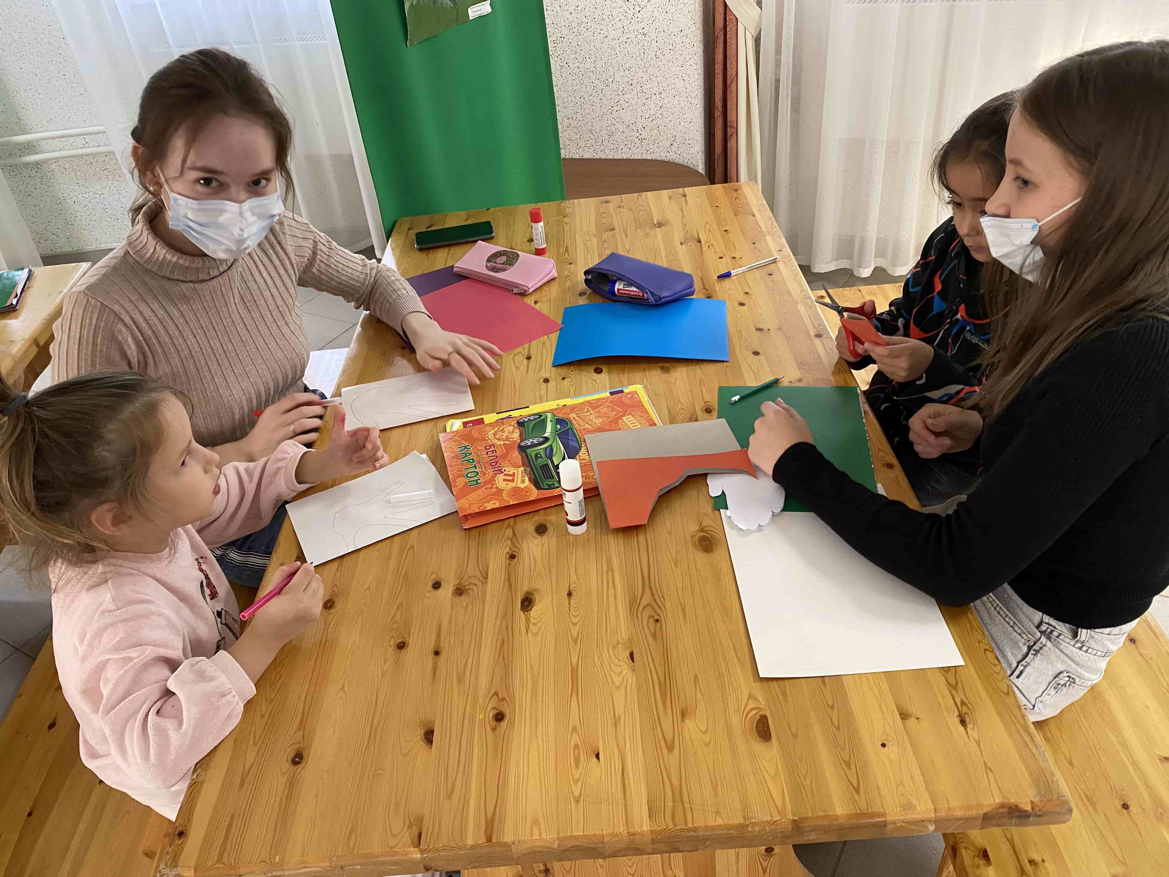 Дети с ОВЗ, находящиеся на лечении в реабилитационном центре для инвалидов, с радостью встретили студентов и воодушевленно принялись изготавливать из цветной бумаги и картона подарки для бабушек и дедушек.