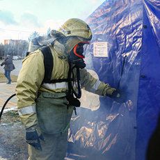 Практика по отработке пожарно-спасательных мероприятий проходила на отведенной площадке, где была размещена палатка со спрятанным в ней генератором дыма, – так условия тренировочного задания были приближены к реальным. Его сценарий предполагал эвакуацию «пострадавшего» из зоны задымления. Для успешного выполнения требовалось надеть комплект спасательного снаряжения. Проводилось мероприятие под руководством сотрудника пожарно-спасательной части № 41 города Сургута.