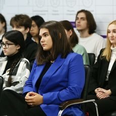 Мария Валерьевна сообщила, что программа «Обучение служением» о смыслах, самоопределении и самореализации. А затем спросила у студентов, в каком будущем они хотят жить – где граждане безразличны или каждый помогает друг другу?