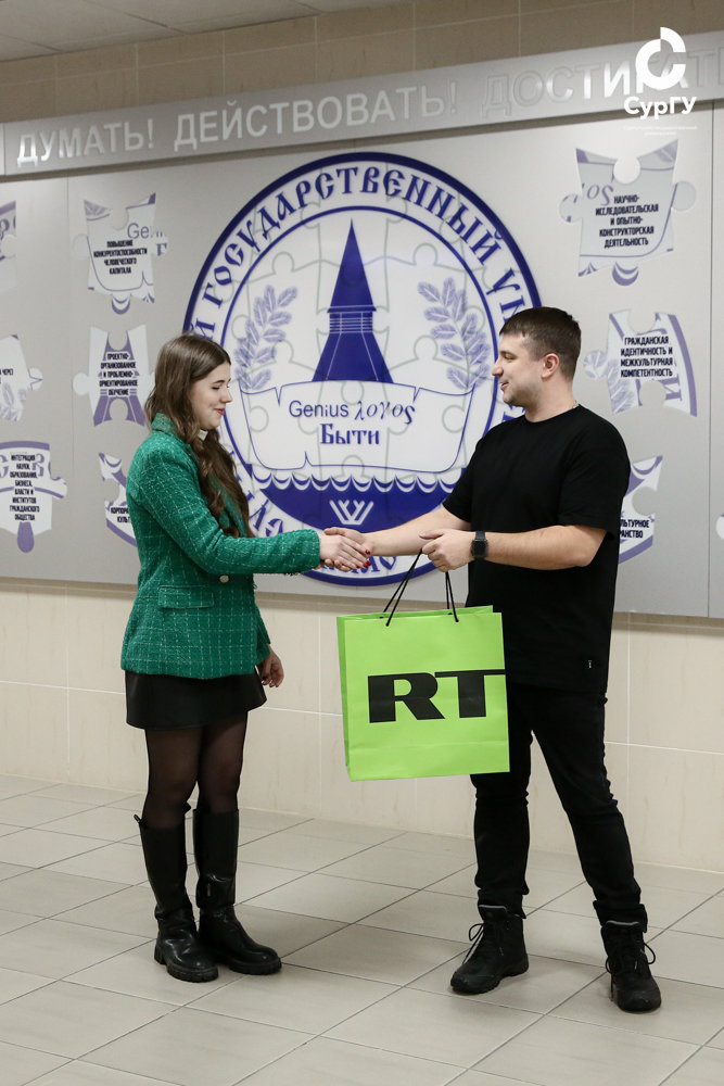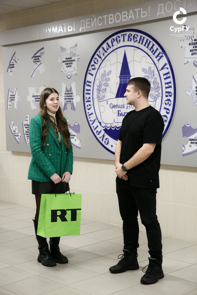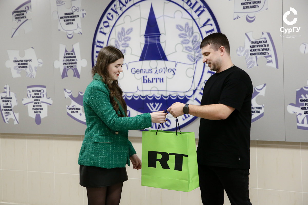 Сургутский госуниверситет сегодня посетил начальник отдела патриотических проектов и программ управления по общественным проектам департамента молодежной политики, гражданских инициатив и внешних связей Югры Константин Воронов. Он приехал лично поздравить и вручить подарок от Международного телеканала Russia Today (RT) нашей студентке-первокурснице Валерии Горбачёвой.