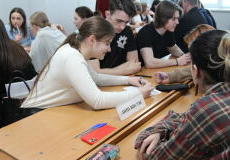1 апреля текущего года в СурГУ высадился профориентационный десант с учащимися общеобразовательных учреждений города Сургута и студентами направления лингвистики СурГУ для участия в мероприятии «Что, где, когда?», посвященного 80-летию победы в Великой отечественной войне.