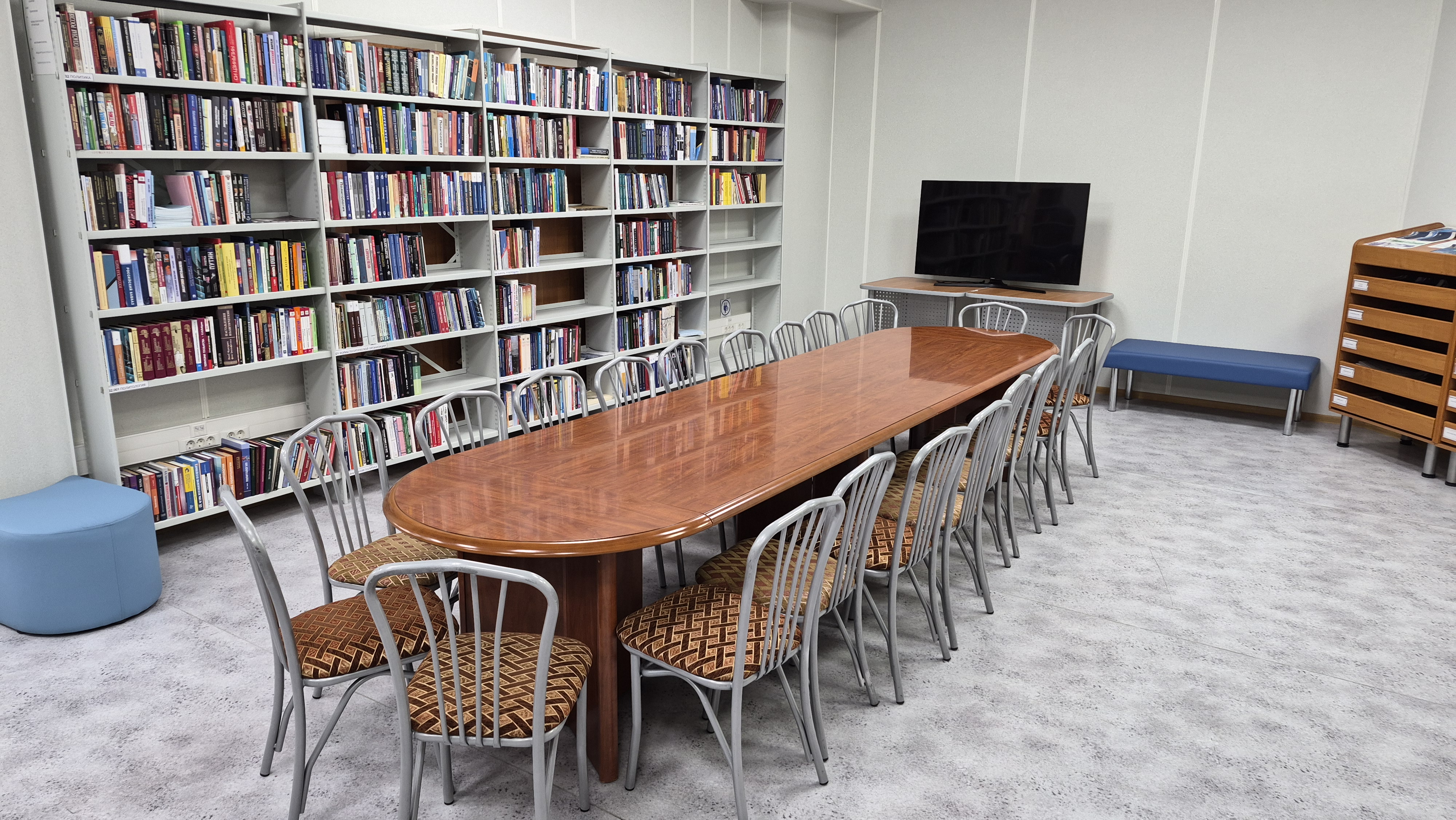 20 посадочных мест, 1 большой стол, телевизор.